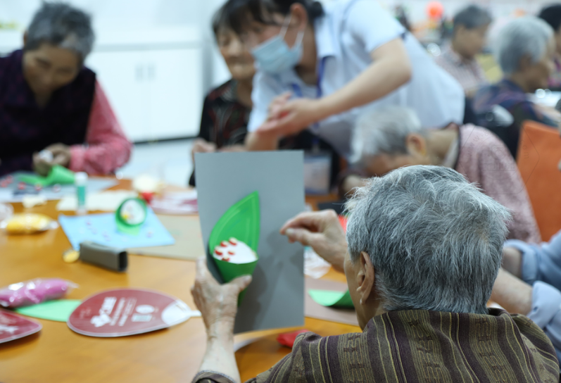 工業(yè)熊志愿者們精神飽滿,帶著真誠(chéng)的微笑,全身心投入本次志愿服務(wù)活動(dòng)。當(dāng)天上午,青年志愿者與老人一起做手工粽子畫,老人們一邊發(fā)揮想象力捏著各種形狀的粽餡,一邊和志愿者閑聊。