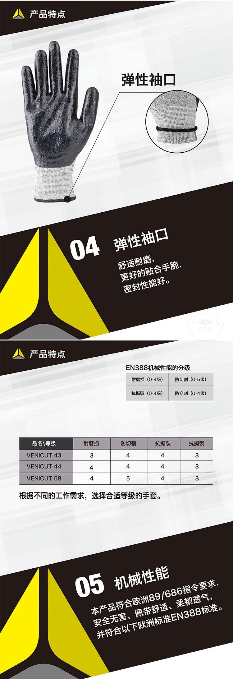 商品名稱:代爾塔 3副裝防割勞保工作手套 VENICUT43(3級耐磨4級防割)