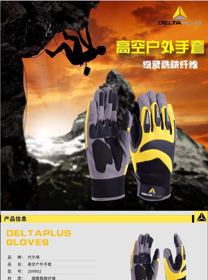 商品名稱:代爾塔 高空戶外運動手套 適用于攀巖繩索作業(yè) 耐磨防護(hù)透氣舒.適安.全騎行 209902 黃/黑色 一副(2只)