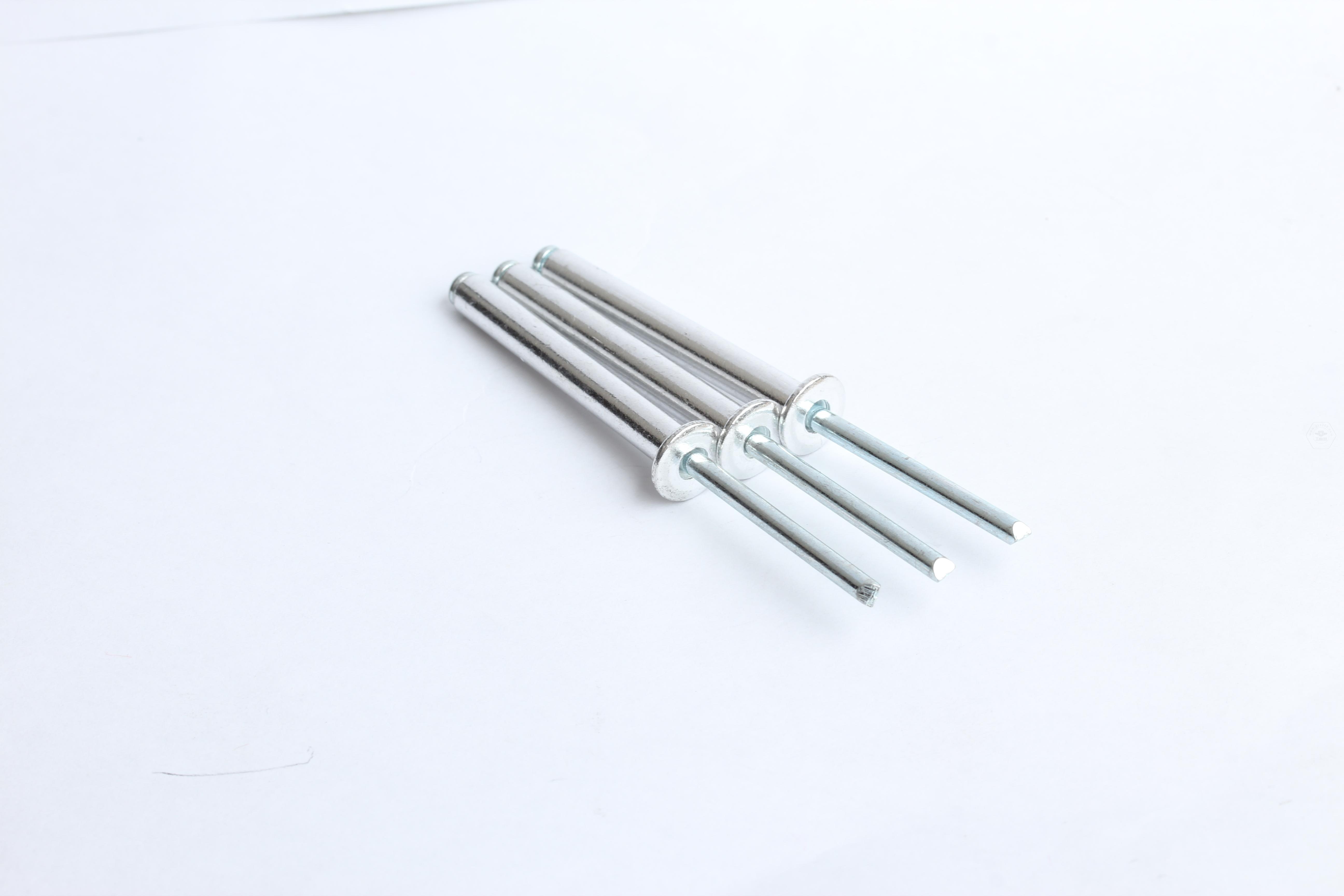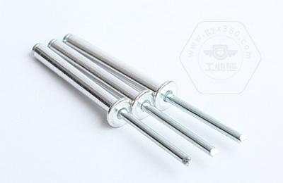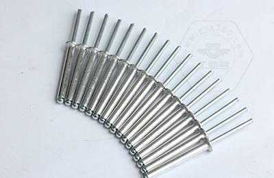 鉚接時,鉚釘釘芯由專用鉚槍拉動,使鉚體膨脹,起到鉚接作用。這類鉚釘特別適用于不便采用普通鉚釘(須從兩面進行鉚接)的鉚接場合。故廣泛用于建筑、汽車、船舶、飛機、電器、家具等產(chǎn)品上。