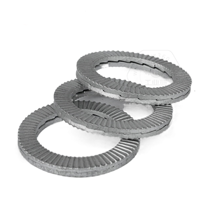 • 產(chǎn)品描述:DIN25201SPS 雙疊自鎖墊圈,也叫碳鋼加大防松鎖緊墊圈、愜入式鎖緊墊圈、雙疊自鎖墊圈抗振防松動墊圈、自動鎖緊功能墊圈、安全鎖緊墊圈、雙層防松墊片、減震墊圈、對鎖墊圈、楔齒墊圈。DIN25201SPS 雙疊自鎖墊圈由二片不同斜紋墊圈組成,組裝時內(nèi)斜齒面相對,外側(cè)放射狀齒面與兩端接觸面形成咬合狀態(tài),當連接件受到振動并產(chǎn)生螺栓松動隱患時,只允許兩個墊片內(nèi)側(cè)的斜齒相對錯動,導致張力升高,從而防止松